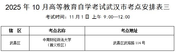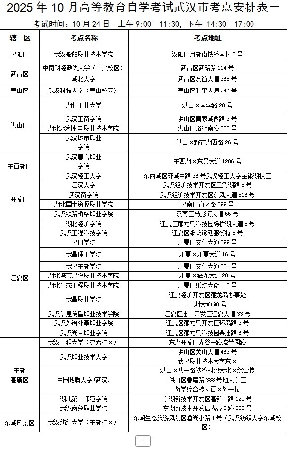 其中,2025年全国成人高考和高等教育自学考试涉及江岸、江汉、硚口、汉阳、武昌等16个辖区(见附表);2025年度湖北省市州级以上机关公开遴选公务员笔试在武汉商学院北校区设省直、市直考点。